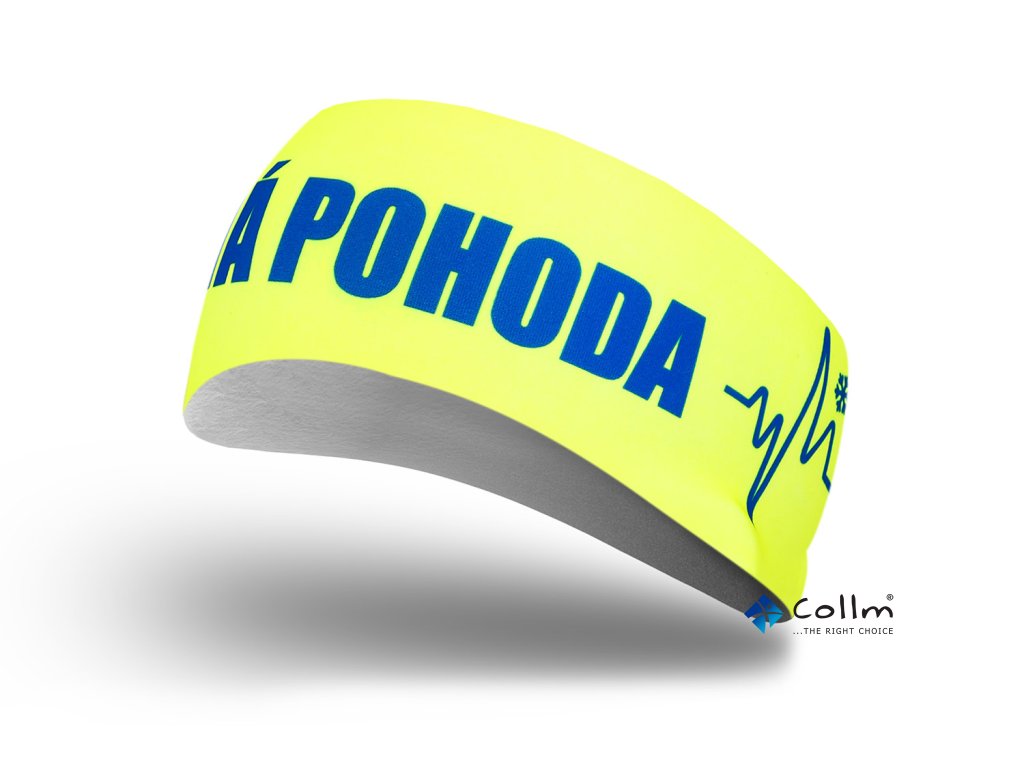Reflexní žlutá čelenka s modrým nápisem pro všechny otužilce, kteří vědí, že klidná hlava zvládne i studenou vodu. Méně drkotání, víc pohody!